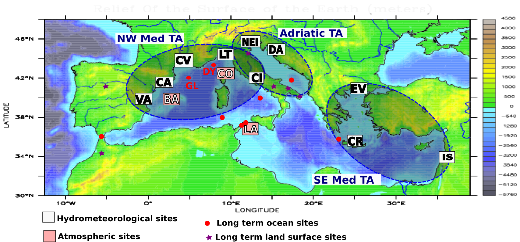 Hydrometeorological sites (including at least one hydrological pilot-site or supersite) and atmospheric sites have been identified for HyMeX. They are managed by dedicated Task support (TS).